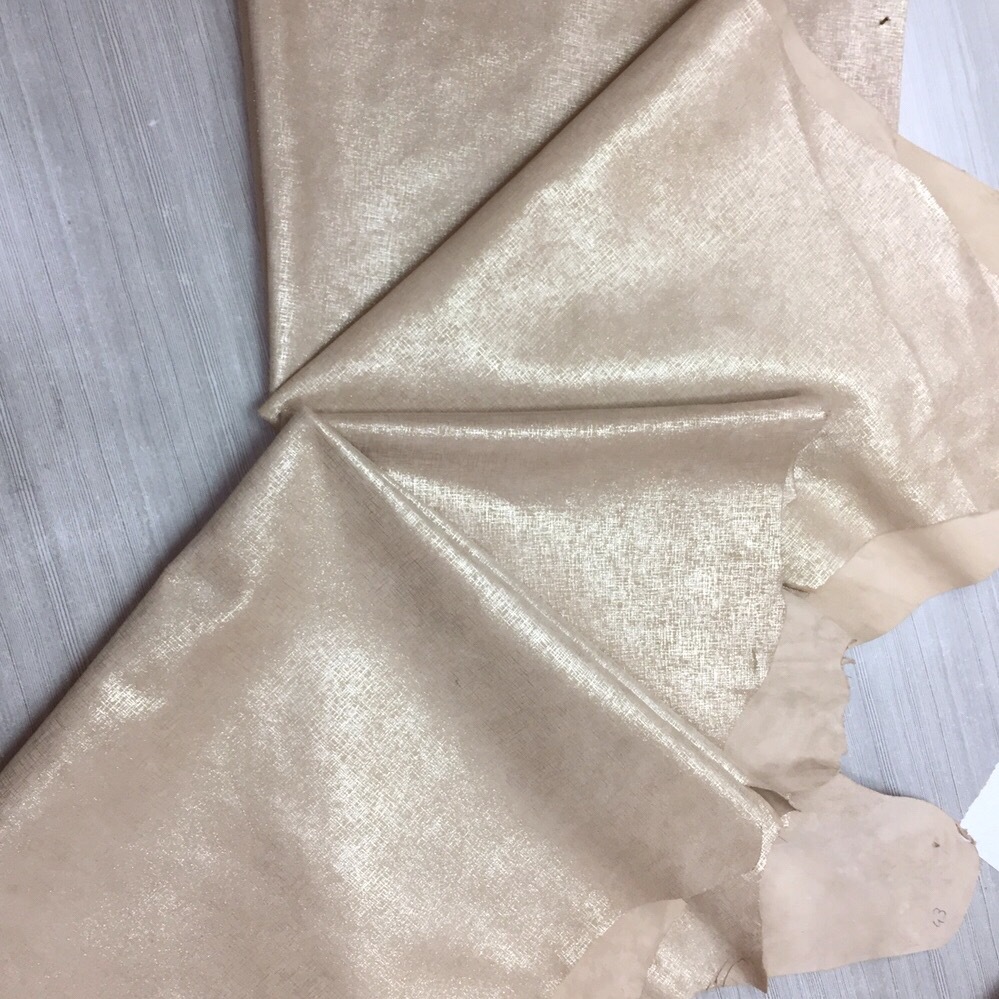Gold well pattern metal film top layer goat leather, garment leather, upper luggage fabric, available from stock