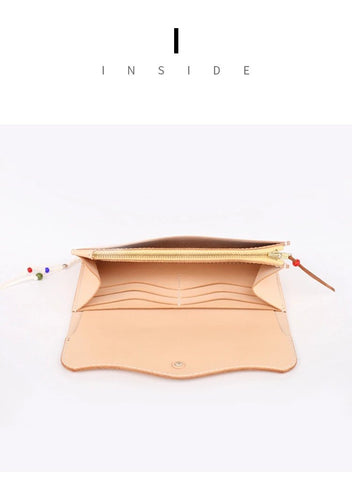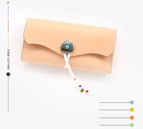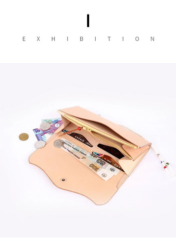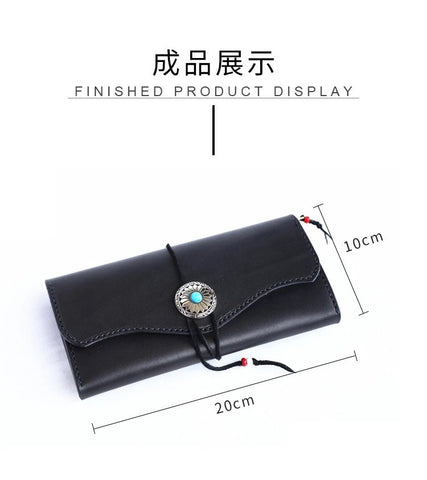 Japanese-style long wallet, handmade leather goods, diy pattern drawing, long wealth cloth