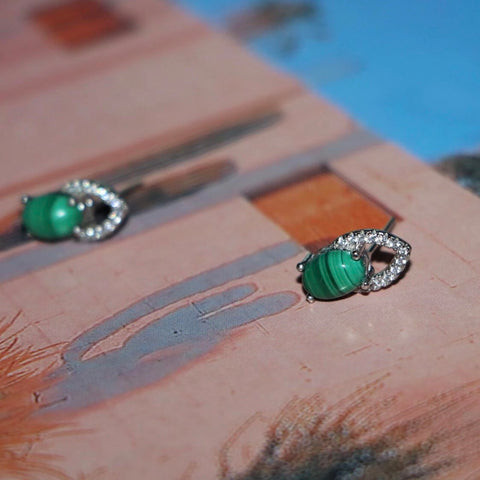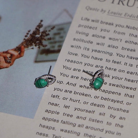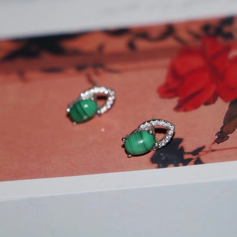 KDG DIY Jewelry Making Kit Semi S925 Sterling Silver Natural Malachite Chinese style Alocasia lily earrings For Women