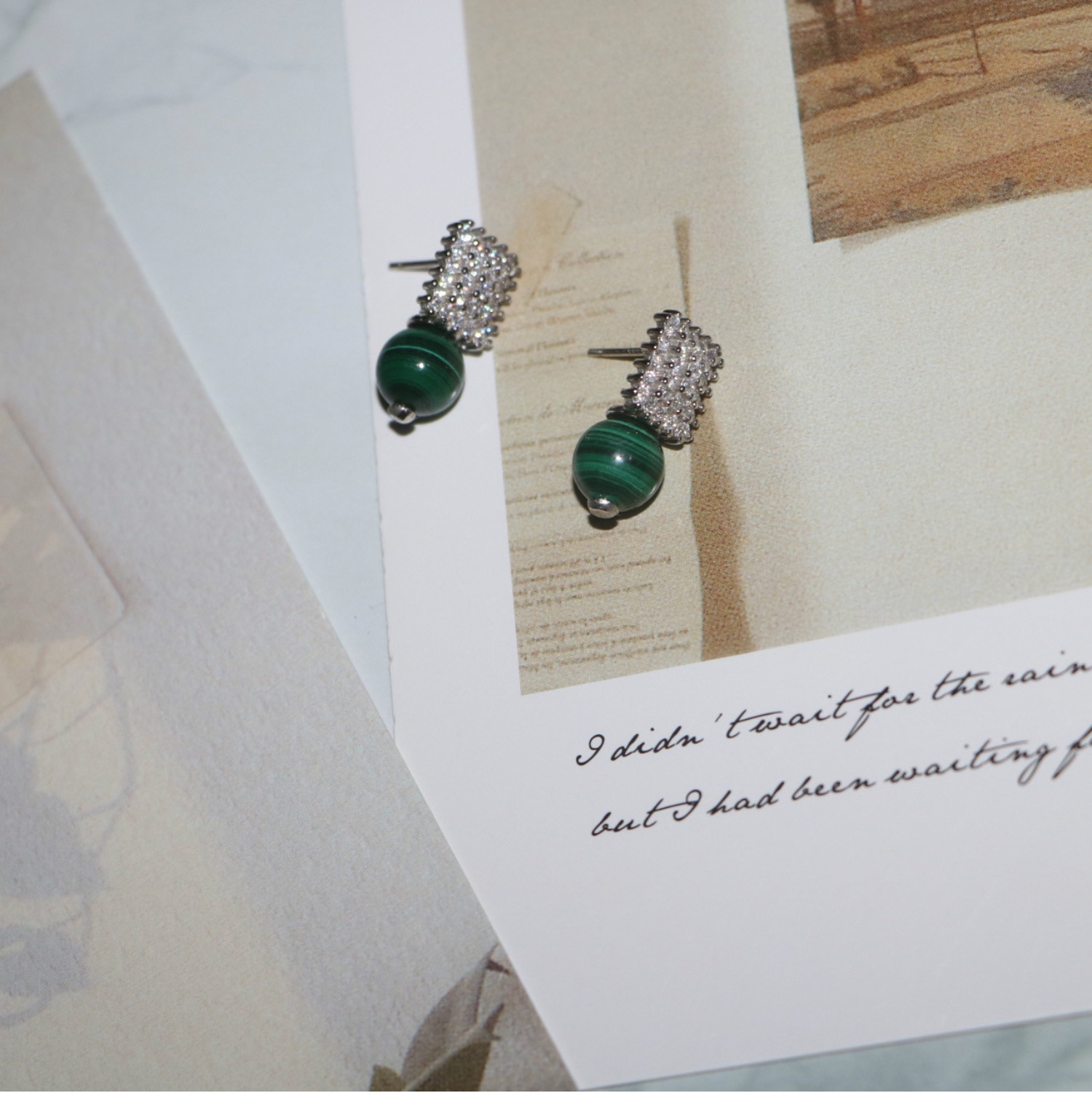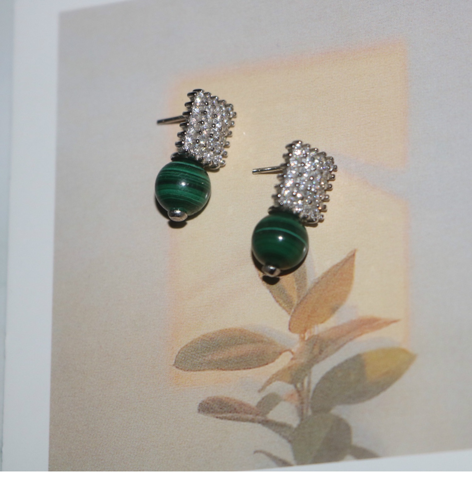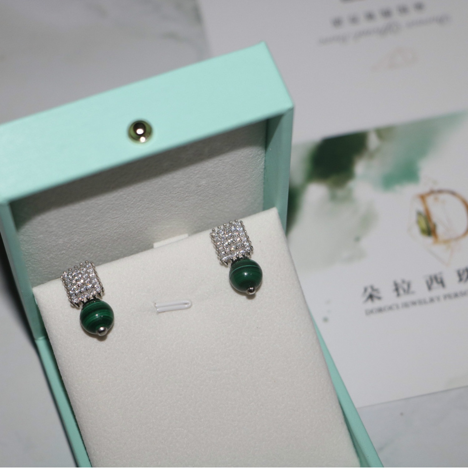 KDG DIY Making Jewelry Kit Semi Jewelry natural malachite earring 925 sterling silver With Eight heart eight arrow zircon