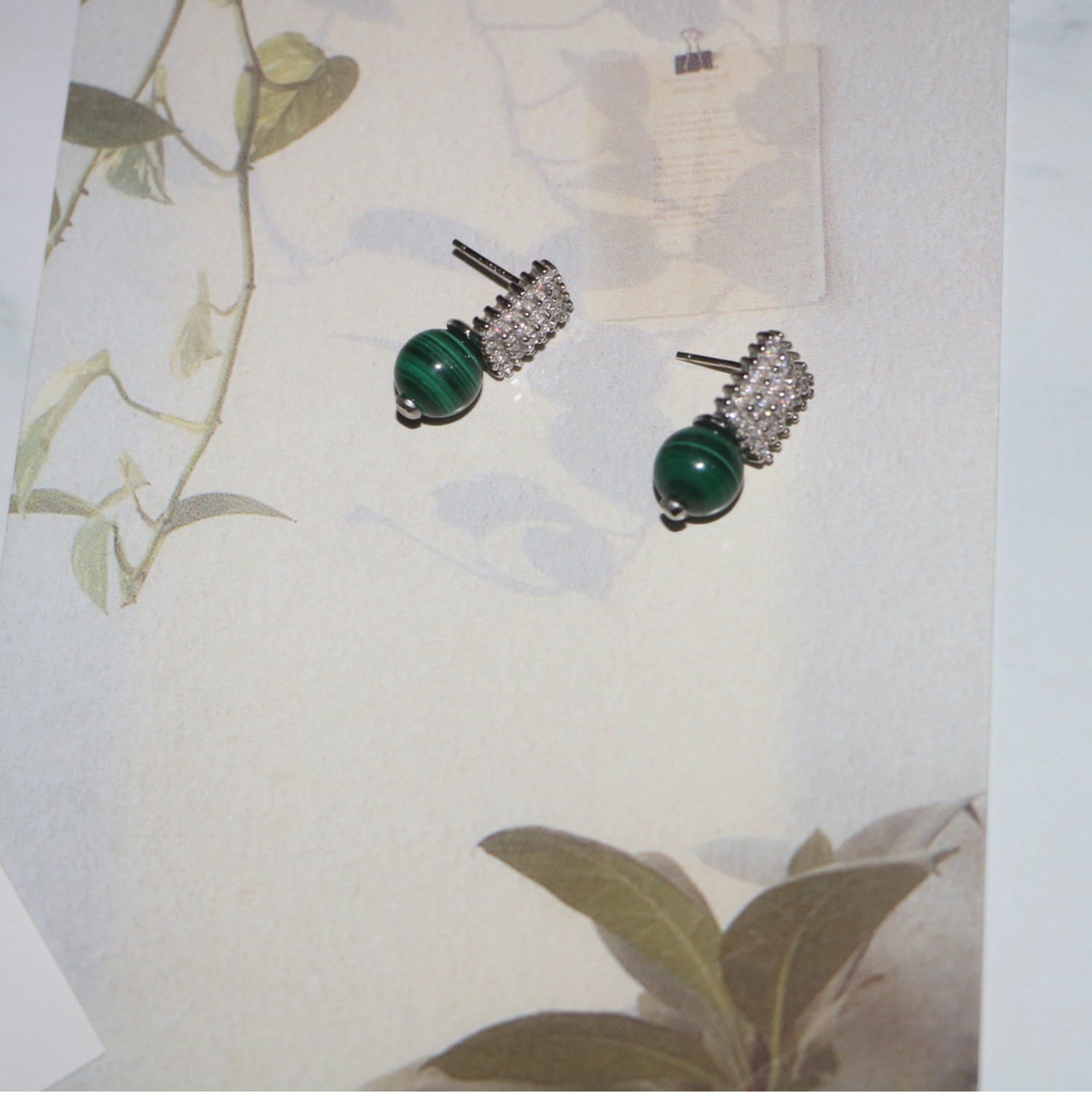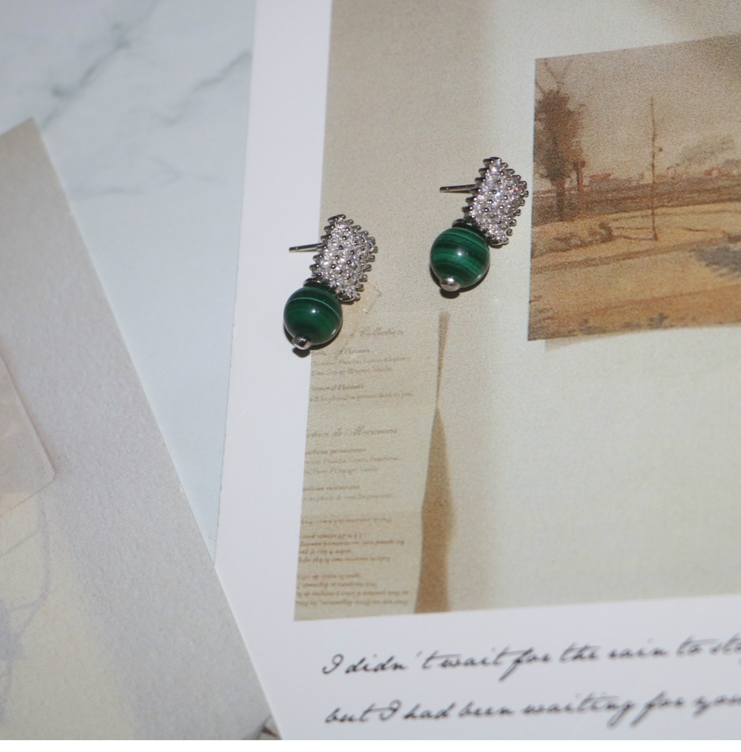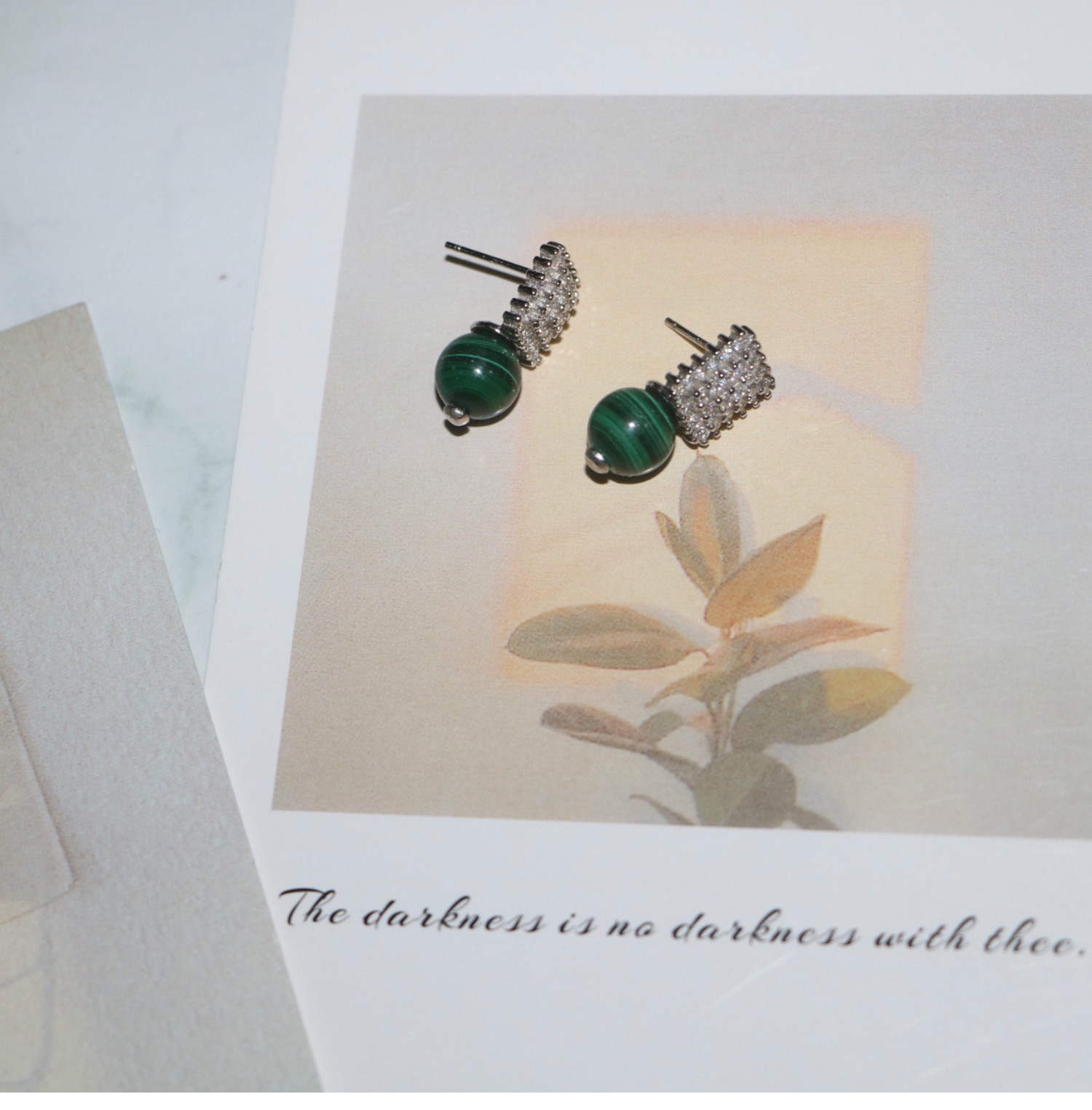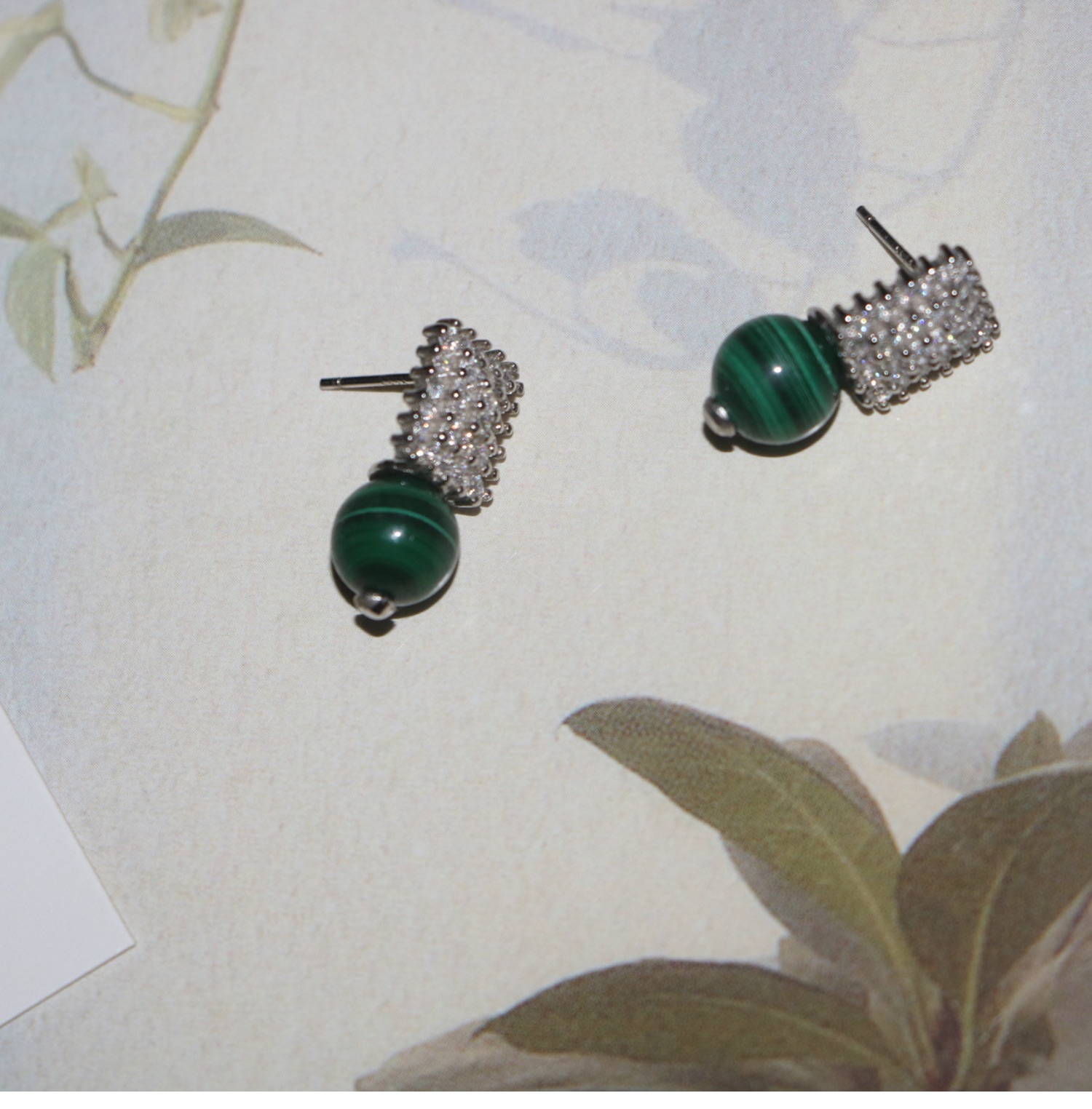KDG DIY Making Jewelry Kit Semi Jewelry natural malachite earring 925 sterling silver With Eight heart eight arrow zircon