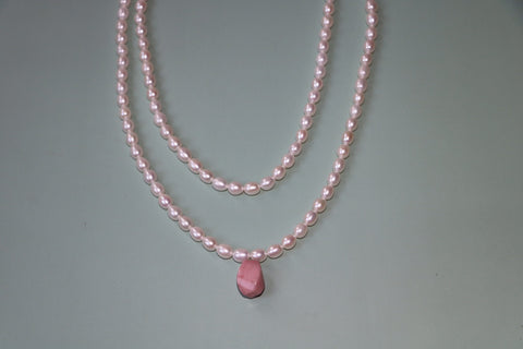 KDG DIY Simple double Freshwater rice pearls 6-7mm necklace rose stone necklace semi-finished material sets